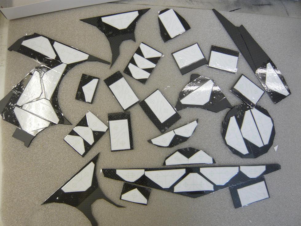 のりは,厚さ0.4mmのカーボンシートでできていて,後縁材とRibを繋ぎます.
