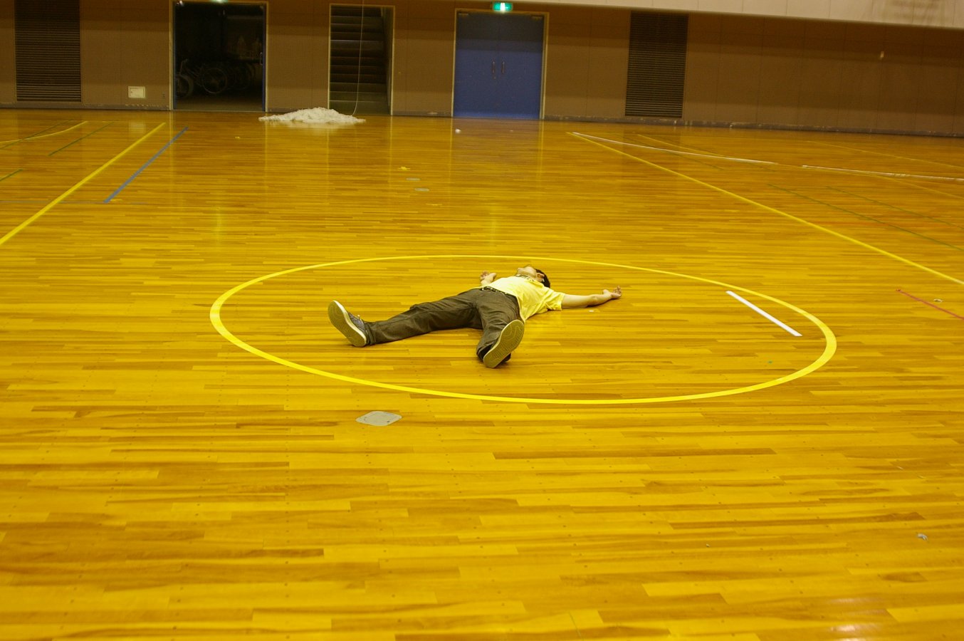 ただし、風の状態がよかったので、一ヶ所だけ張って、後は体育館で張りました。