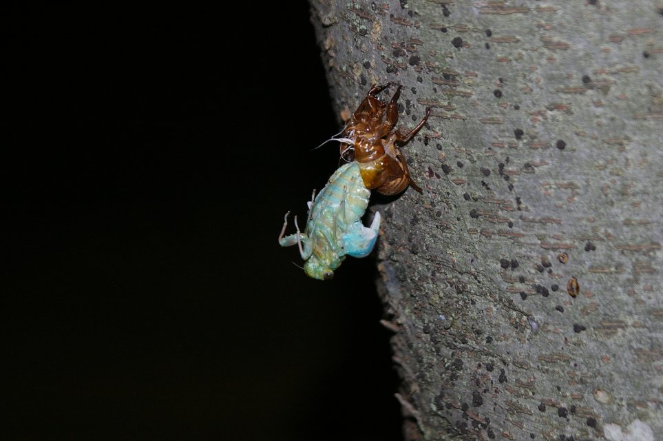 そして、よく見ると、いたるところにセミの幼虫がいて、脱皮をしていました。