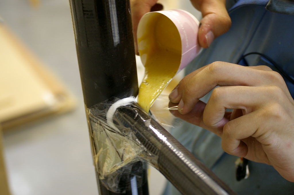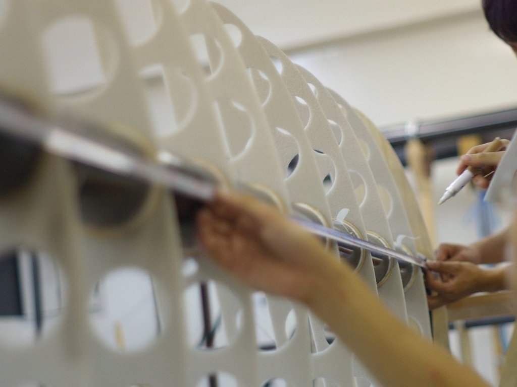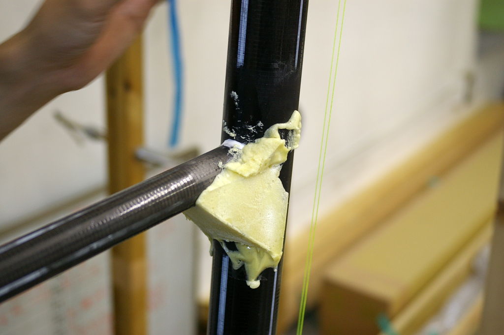 そして、午前中に接着したバルーンが乾いたのを確認して、Xブレーシングを張りだしました。