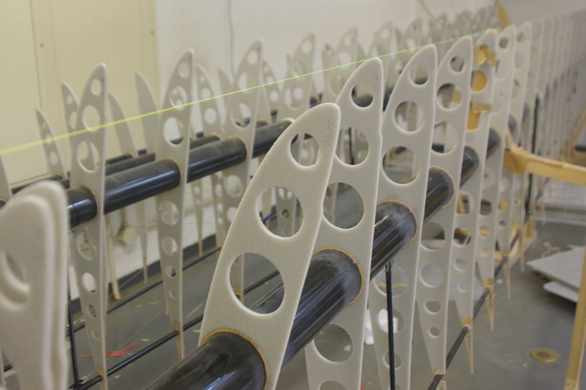 本日、桁にリブを取り付ける作業を主翼は行いました。