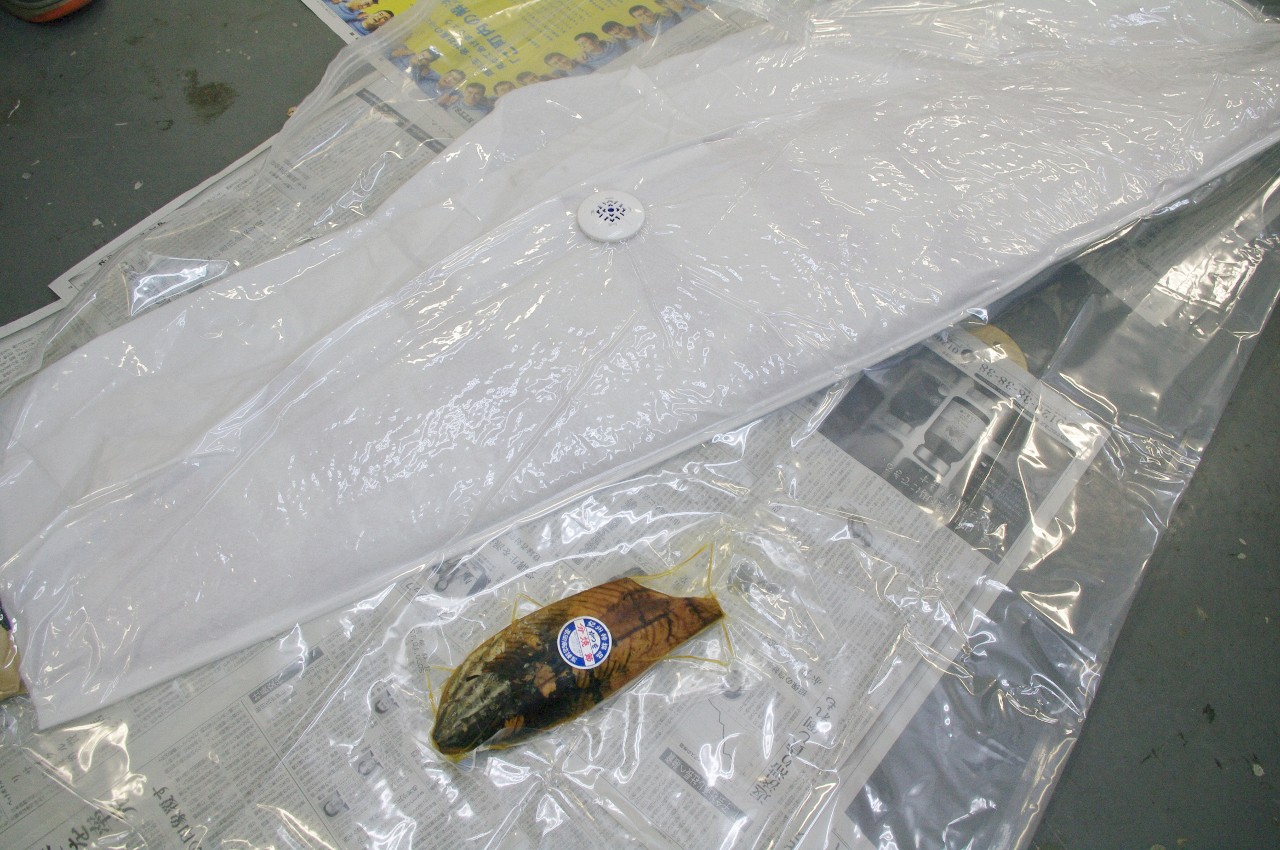 そして、しっかりとクロスを貼り付けたら、真空パックに入れて、硬化待ちです。
