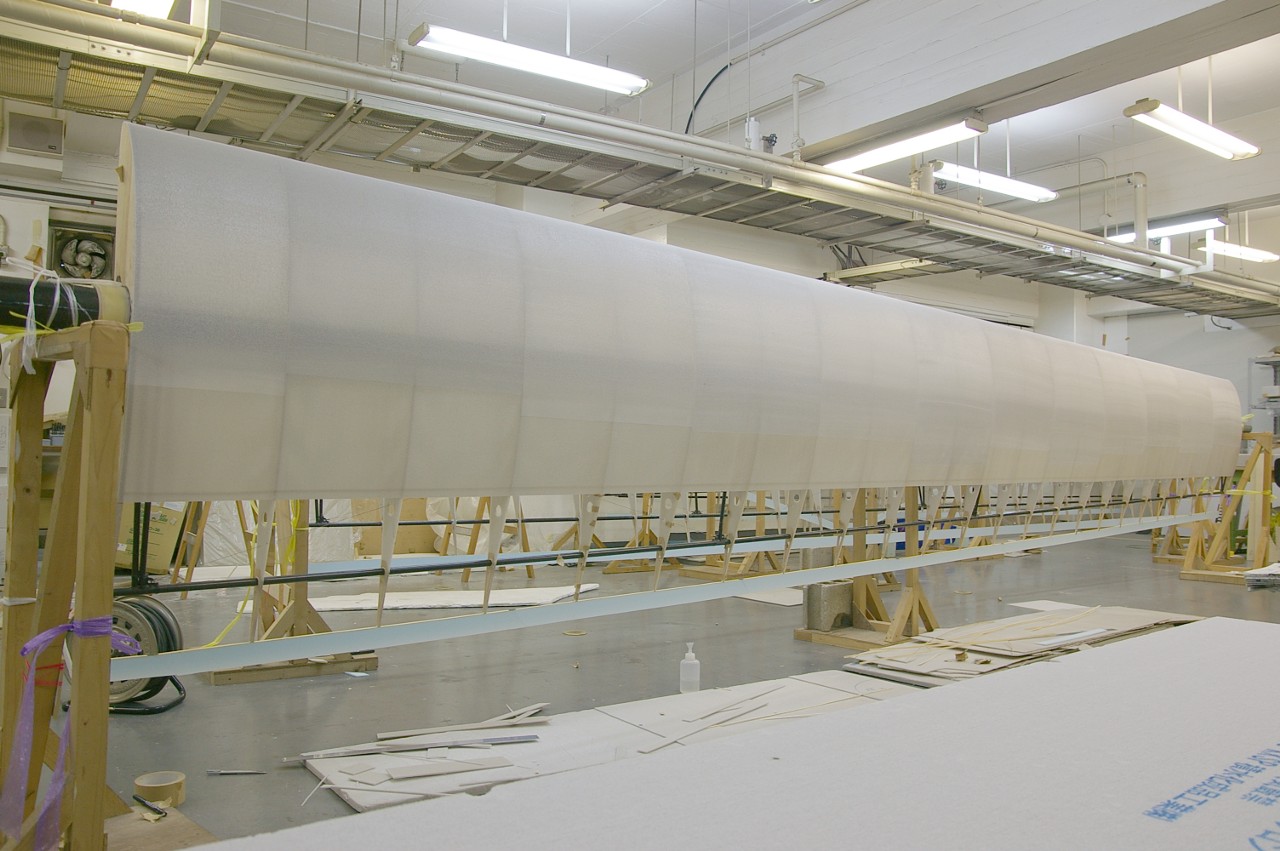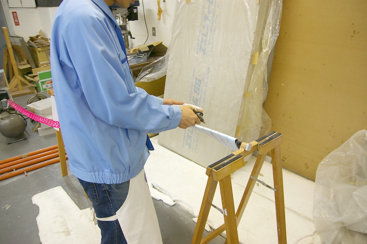 ペラ班が手で、何度も何度もしっかりとスタイロとくっつけていきました。