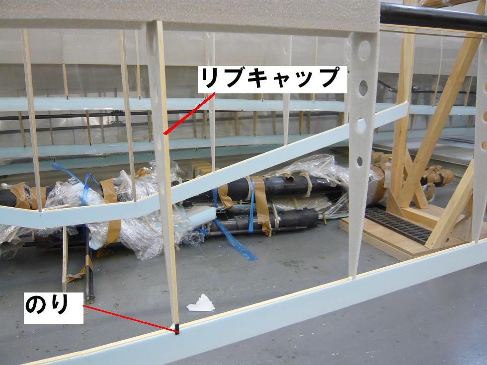 リブキャップは,バルサでできていて,Ribの補強,フィルムを貼る際の