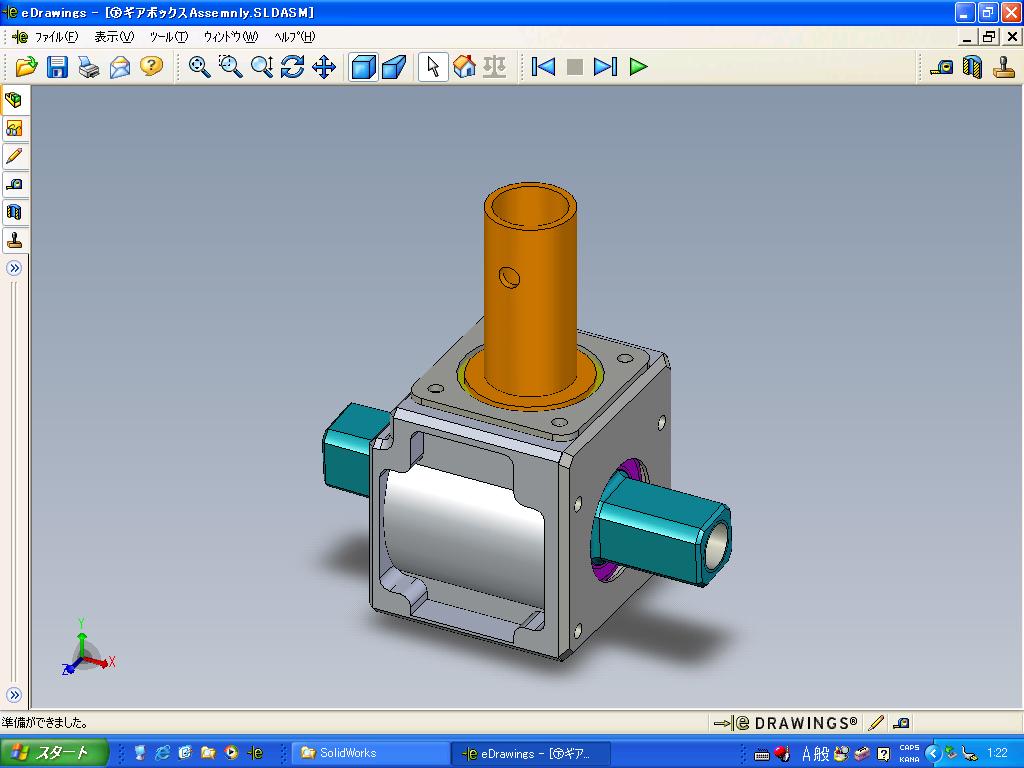 SolidWorksでギアボックス描いてみました.中にはギアや軸受も入っています.